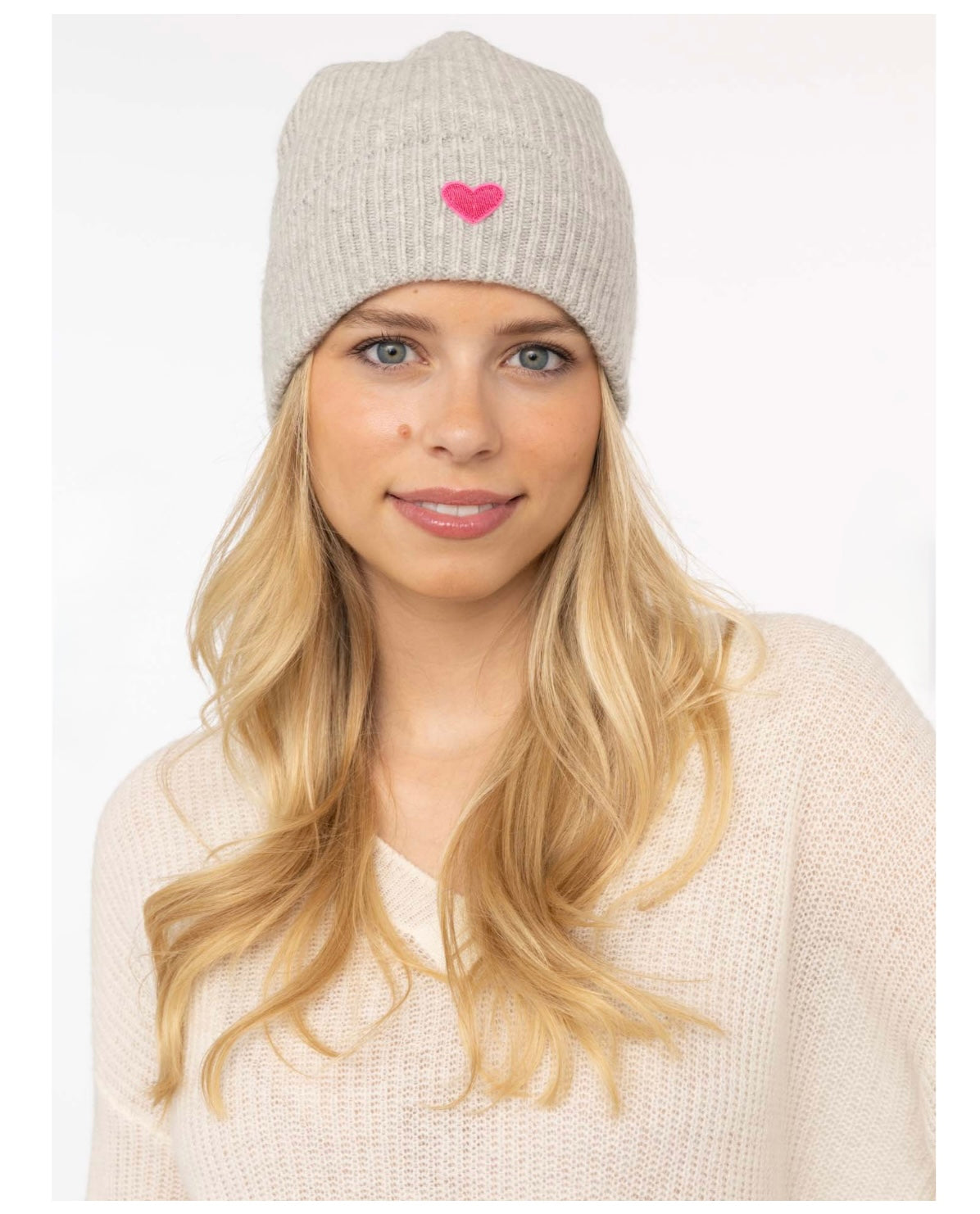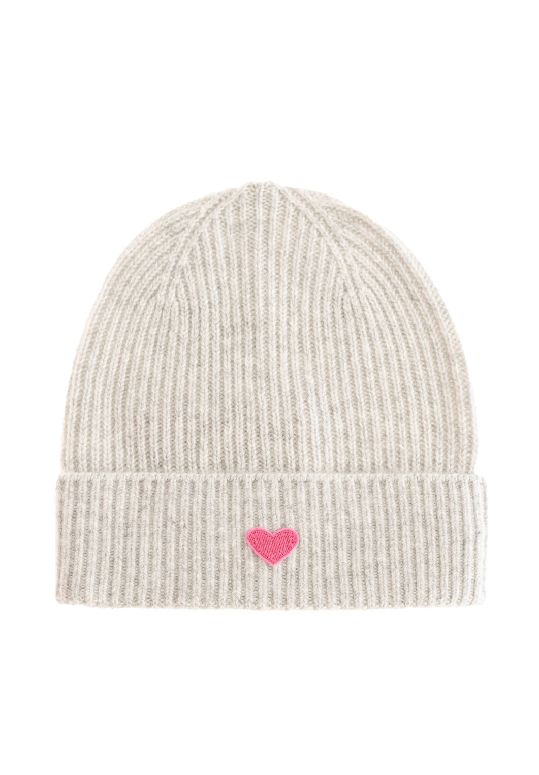 100% Kaschmir Zwillingsherz Mütze mit Herz ❤️ in grau