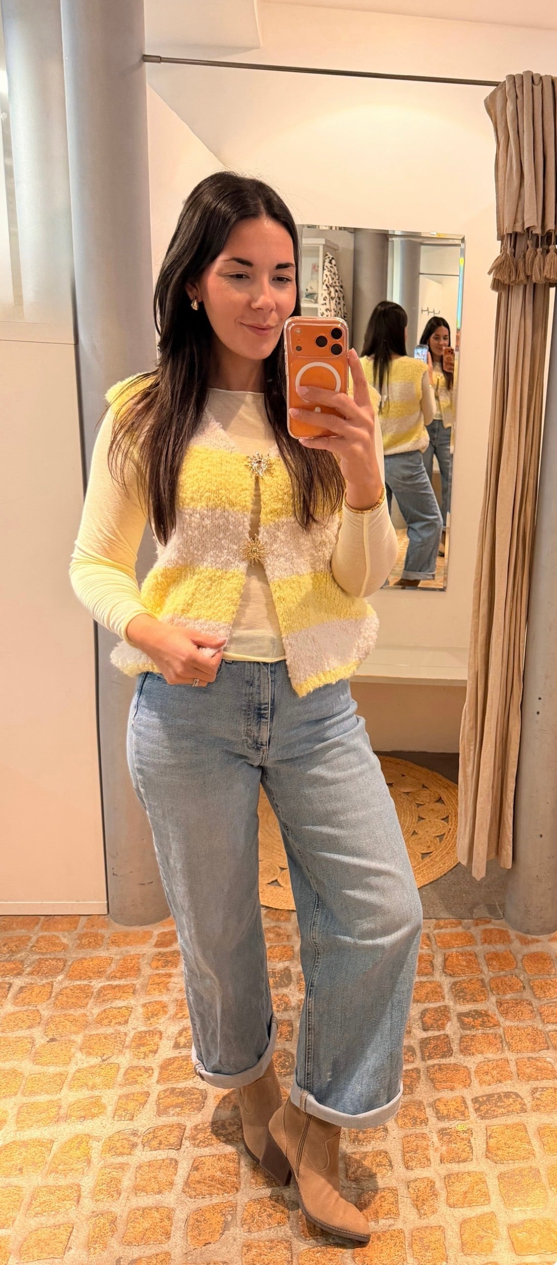 Wunderschöne Boucle Weste mit goldenen Knöpfen. So weich und komfortabel, absolute Empfehlung.