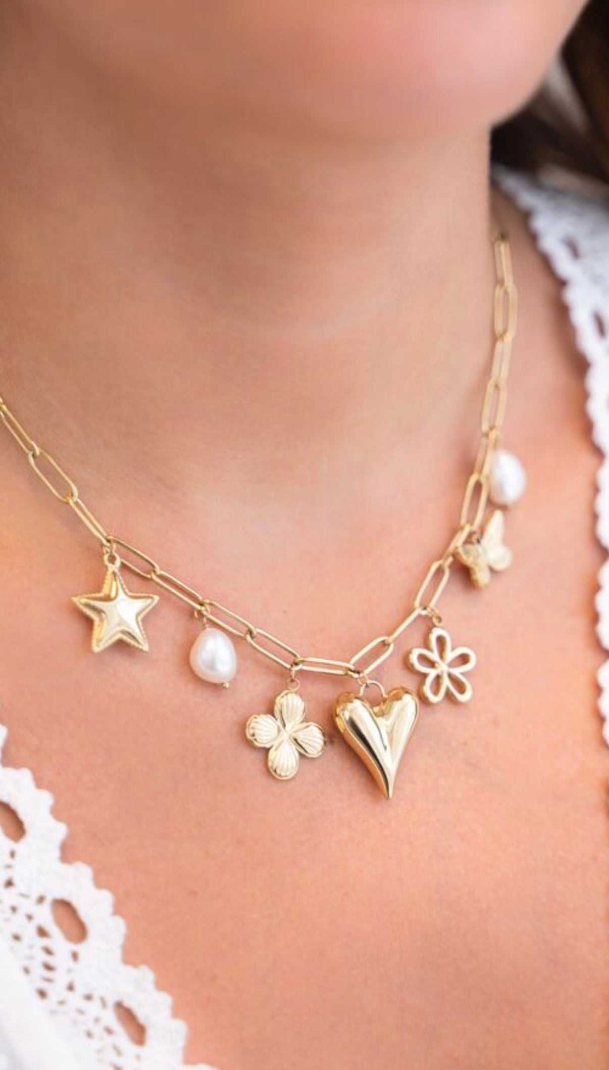 Gliederkette mit Anhängern in gold