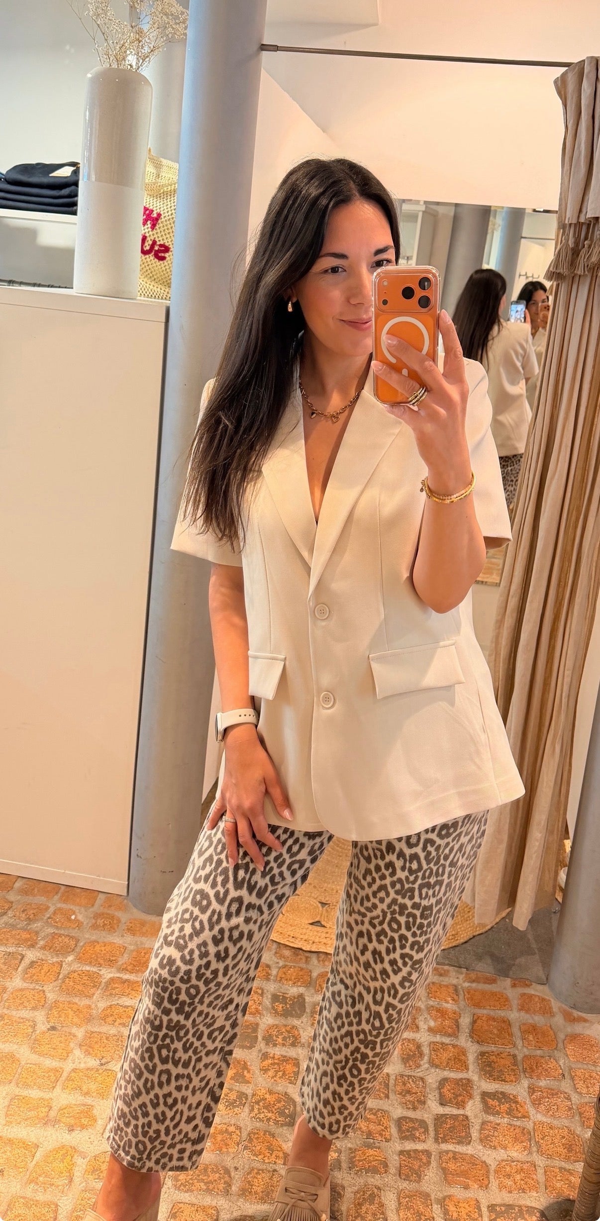 Jeans mit Knopf und Reißverschluss zum Schließen, hinten hat sie Taschen. Der elastische Stoff und der lässige Schnitt macht sie zur perfekten Everyday Jeans!Leo Jeans in leicht verwaschenem Muster. Perfekt kombinierbar sowohl in einem lässigen Look mit Pullover oder auch eleganter mit einem Blazer. Ob mit knalliger Farbe oder casual in gesetzteren Farben. Der Leo-Look ist immer im Trend!