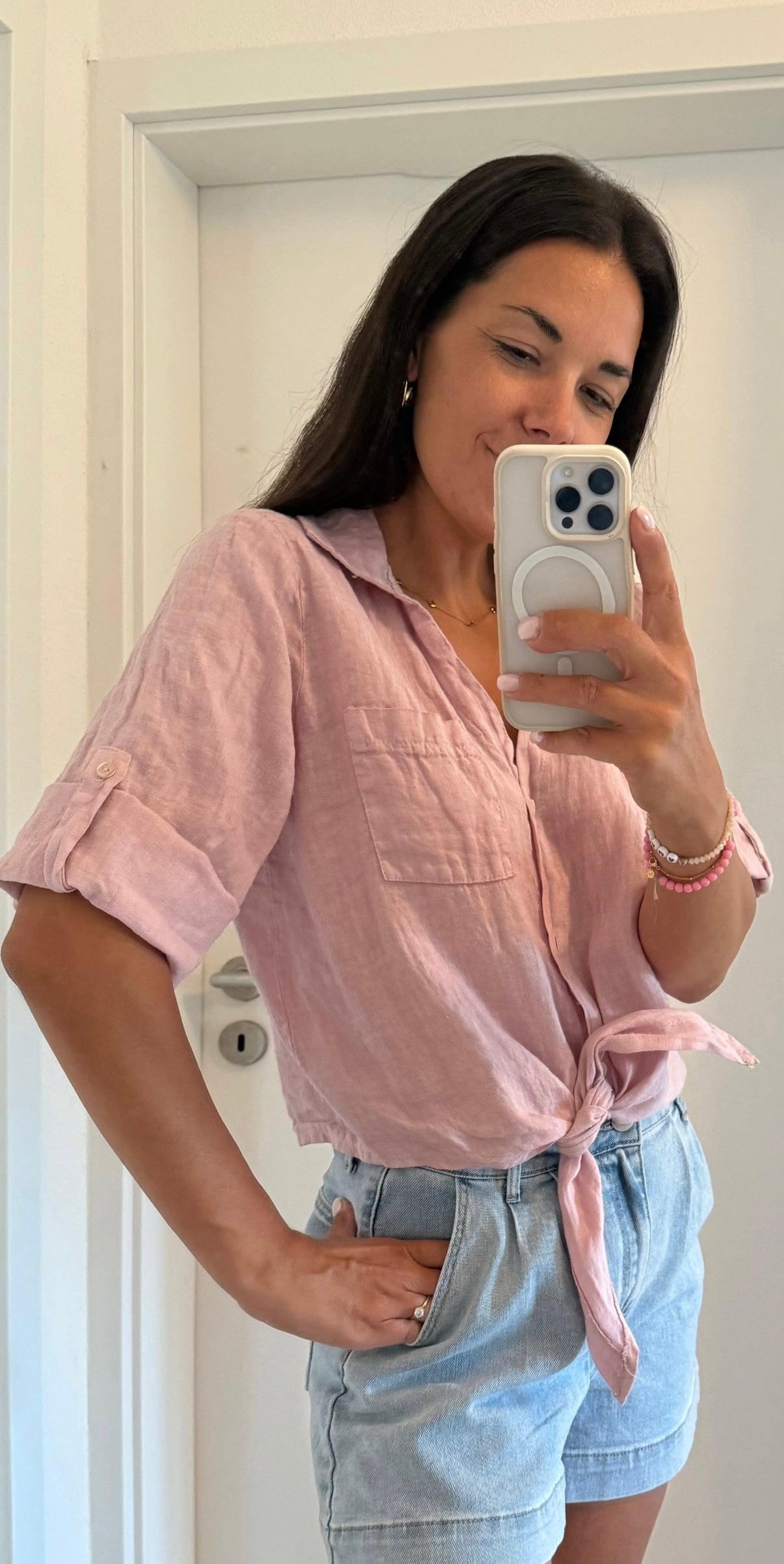 Die perfekte Essential Leinen Bluse die in keinem Kleiderschrank fehlen darf. Super leichte Hemdbluse zum knöpfen und binden, onesize.