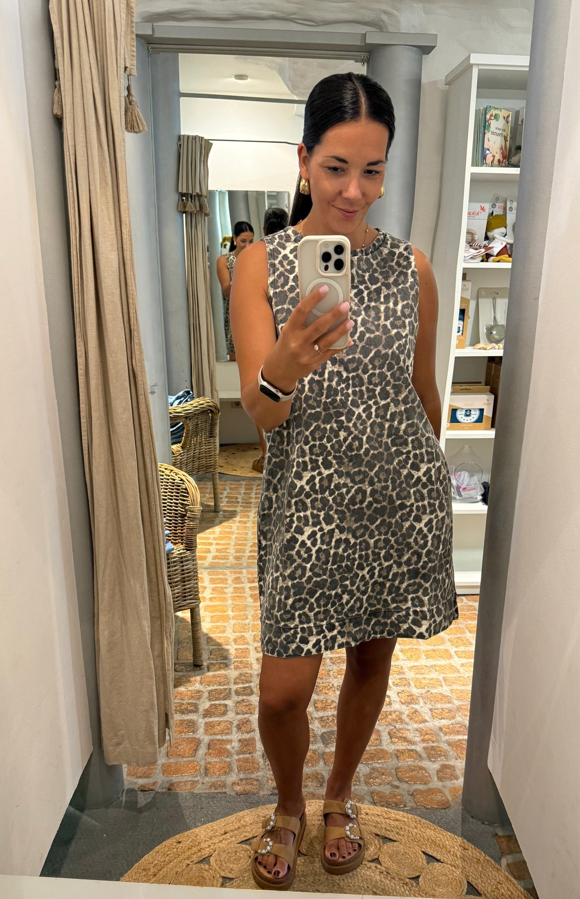 Schönes Jeanskleid mit viel Strech. Es kann einfach mit einem Shirt, Bluse oder Cardigan kombiniert werden. Dazu eine Cap, Schlappen der Sneaker und eine Cross-Body-Tasche und der Look ist perfekt. We are in LOVE!!!