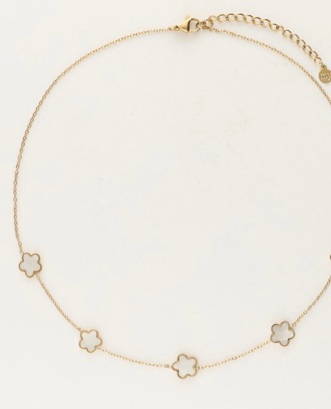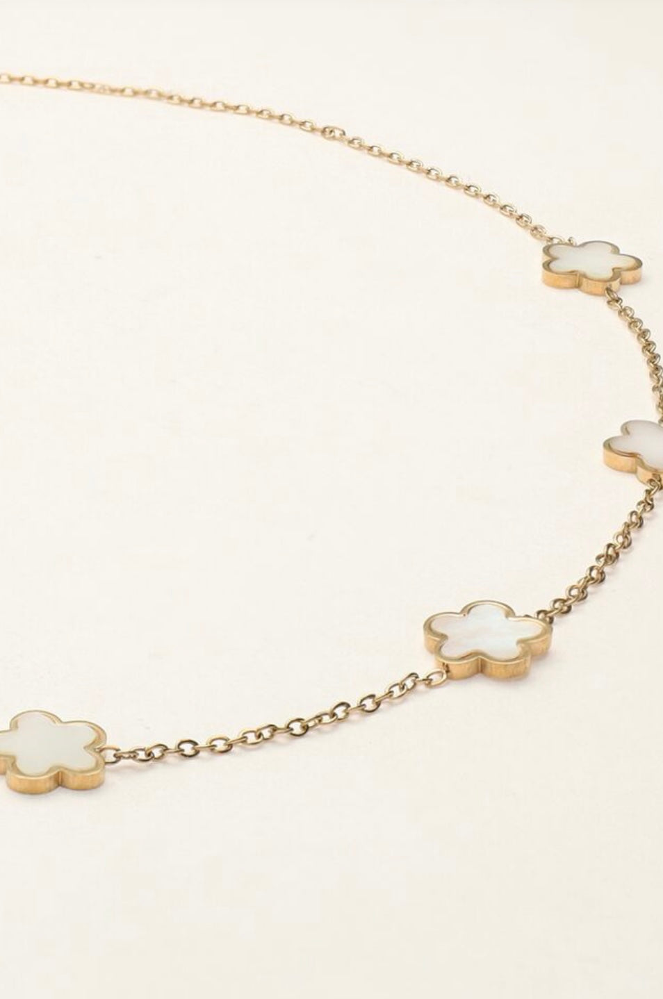Lass dich mit dieser minimalistischen Kette mit Perlmuttblumen strahlen. Die Perlmuttoptik der Blumen glänzt, wenn die Sonne darauf scheint, und macht diese Kette zu einem echten Hingucker, wenn du sie trägst. Sie eignet sich perfekt für jede Gelegenheit, egal ob du abends in die Stadt gehst oder den Tag genießt.