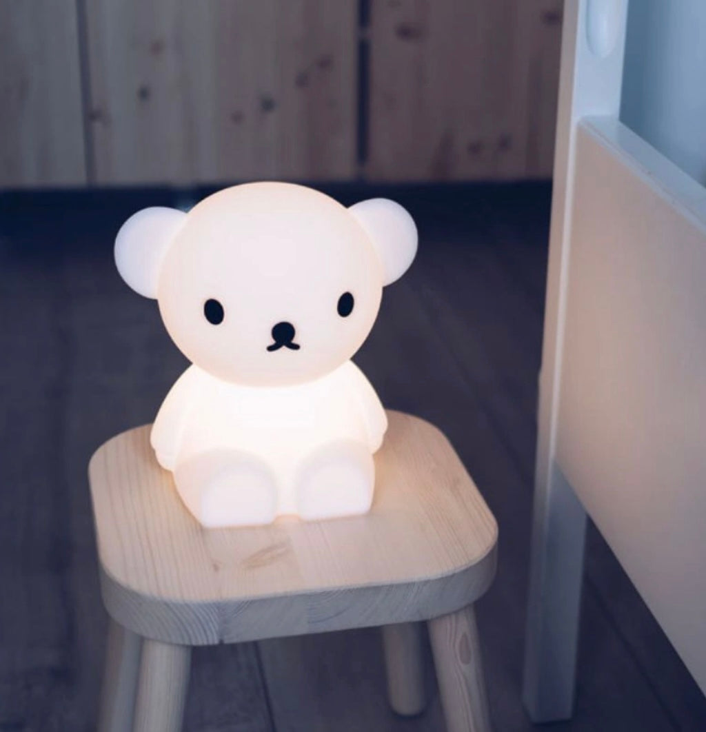 Mit der tollen Bären Lampe von Mr Maria sind ruhige Schlummerstunden vorprogrammiert. Mit Hilfe eines Dimmers lässt sich das Leuchten des kleinen Hasen regulieren und so vom Geschichten-Erzähl-Licht zum Gute-Nacht-Licht herunterdrehen.