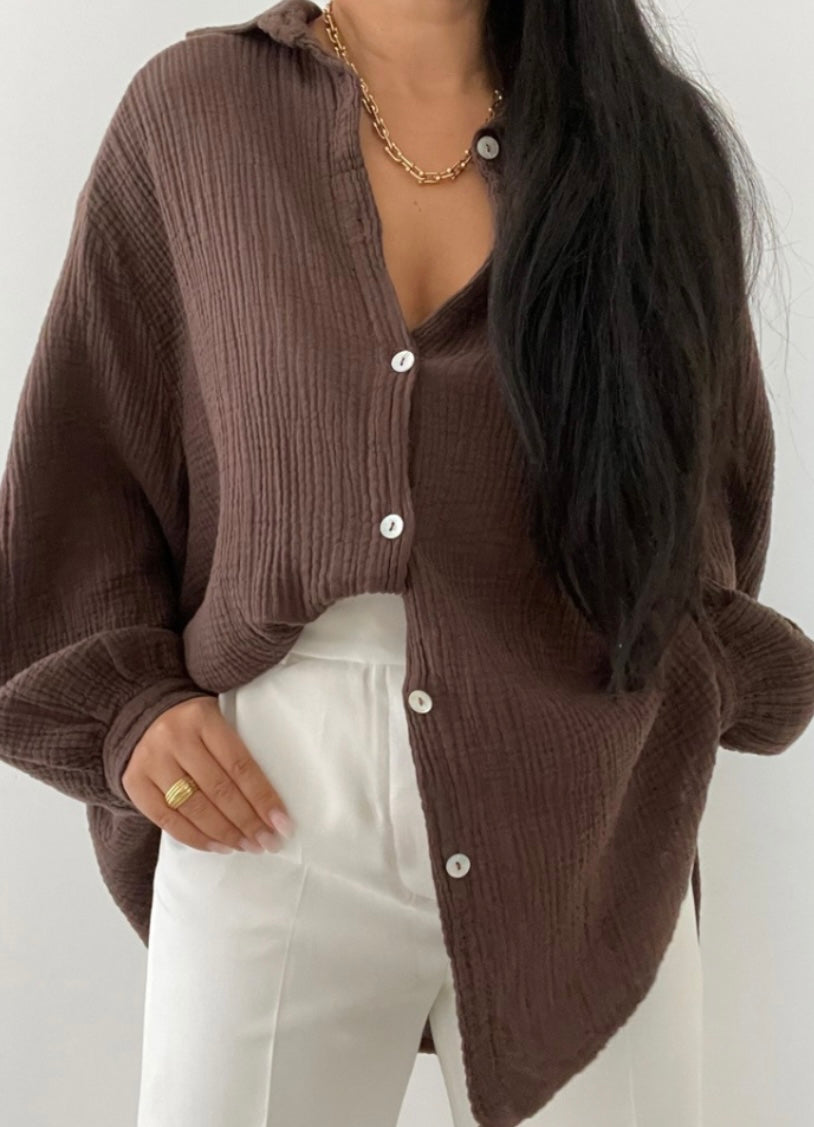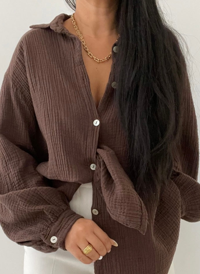 Wunderschöne Musselin Bluse in schokobraun - LIEBEN WIR ❤️