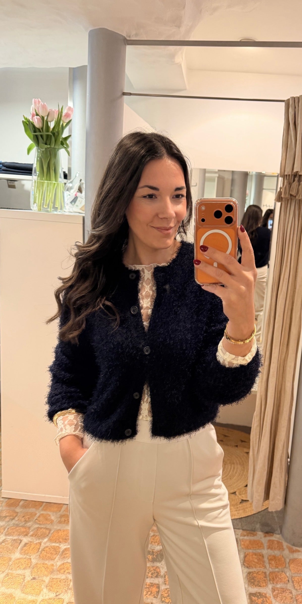 • Alle Strickbündchen und die Knopfleiste sind mit Elasthan verstärkt