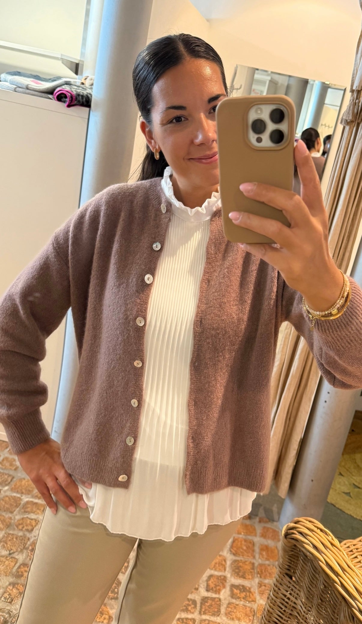 Luftige, leichte Bluse in Plissee, onesize. Die Bluse hat einen Rundkragen, einen runden Saum und Ärmel, die man auch gut schoppen kann. Sie ist die perfekte Bluse für die Herbsttage an denen es noch warm genug ist oder aber auch an kälteren Tagen mit einem Cardigan.