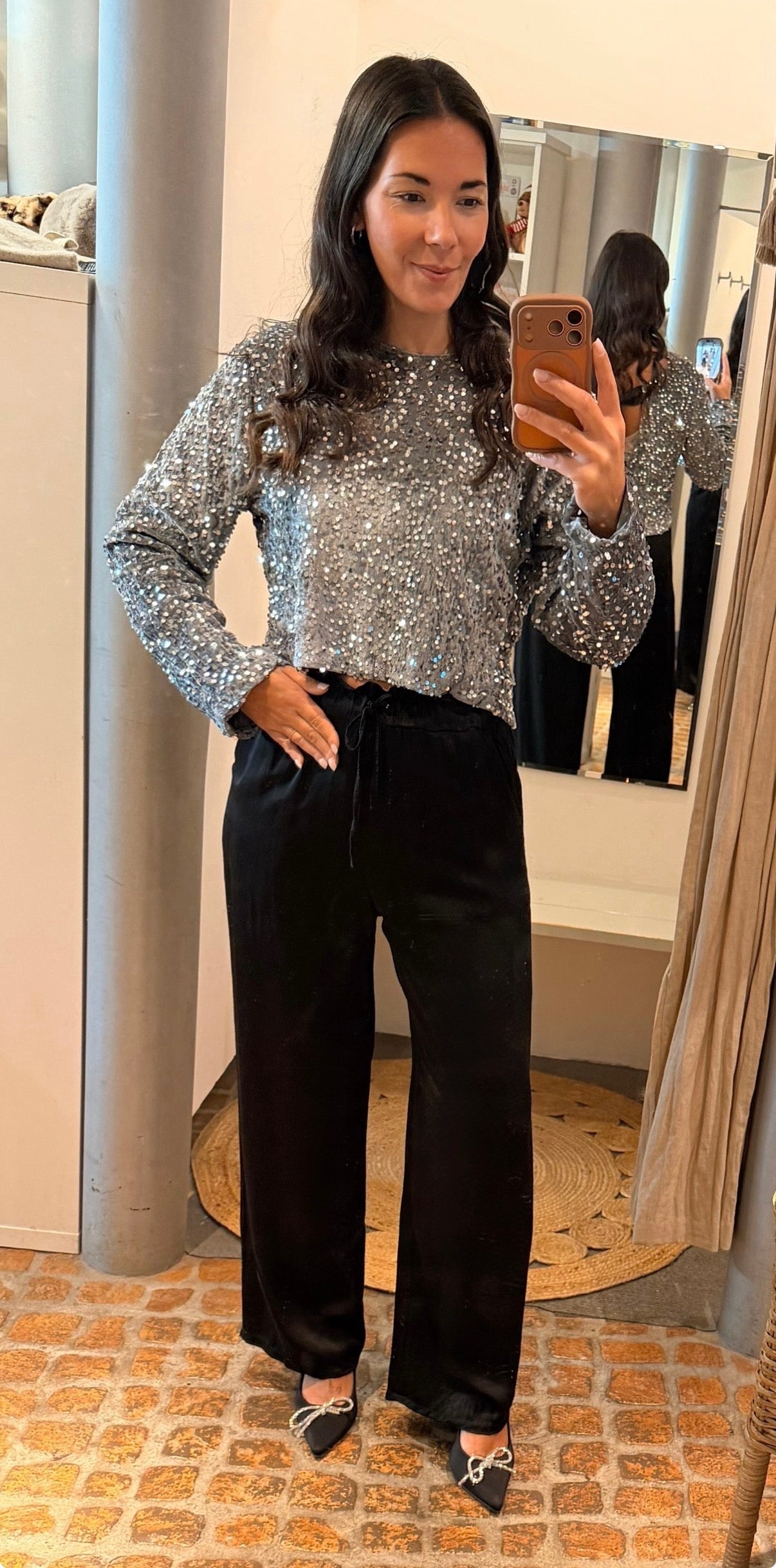 Passt gut zu unseren Pailletten Shirts, Strick Pullis und Cardigans, oder easy kombiniert mit einem Shirt.