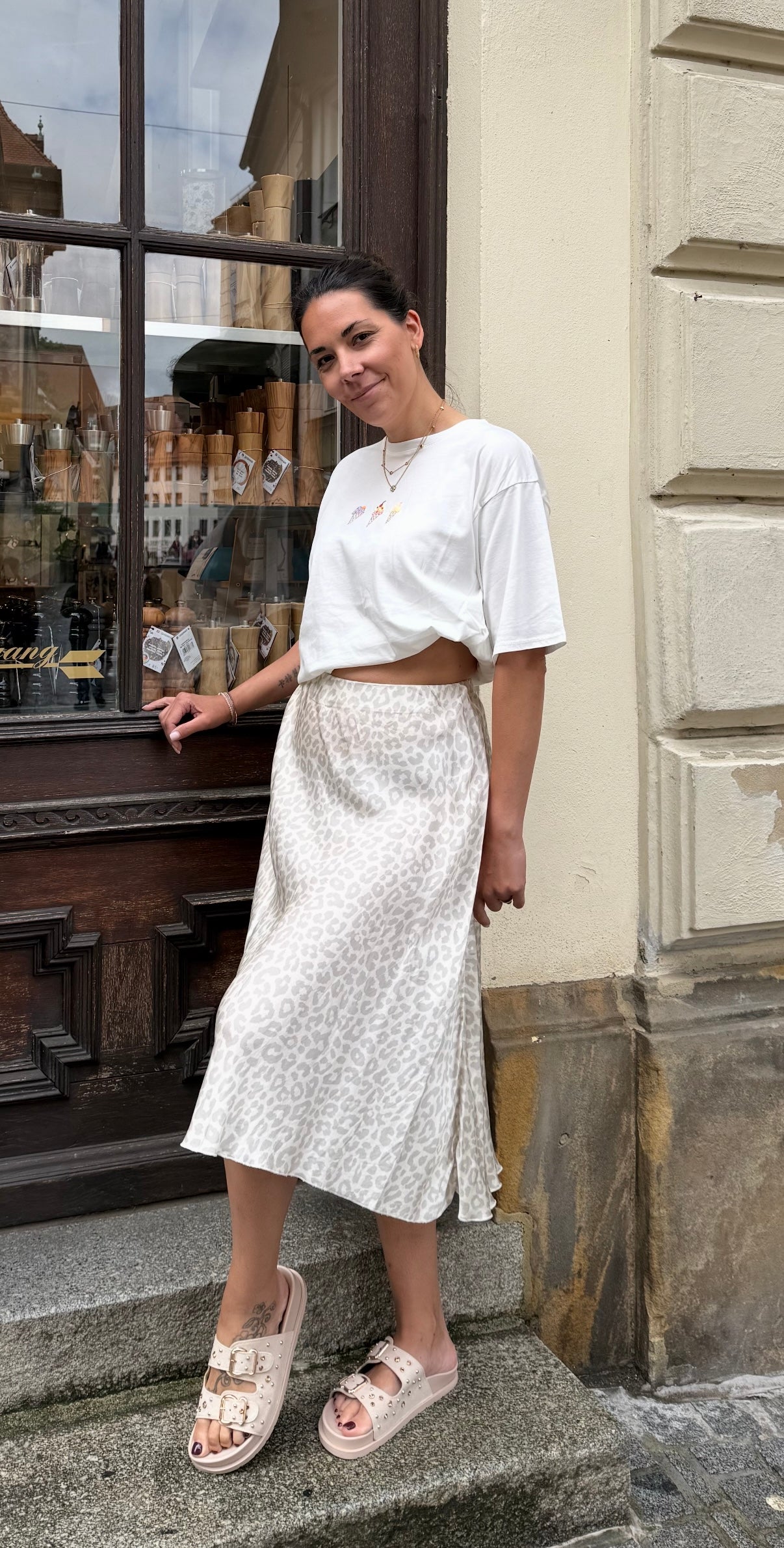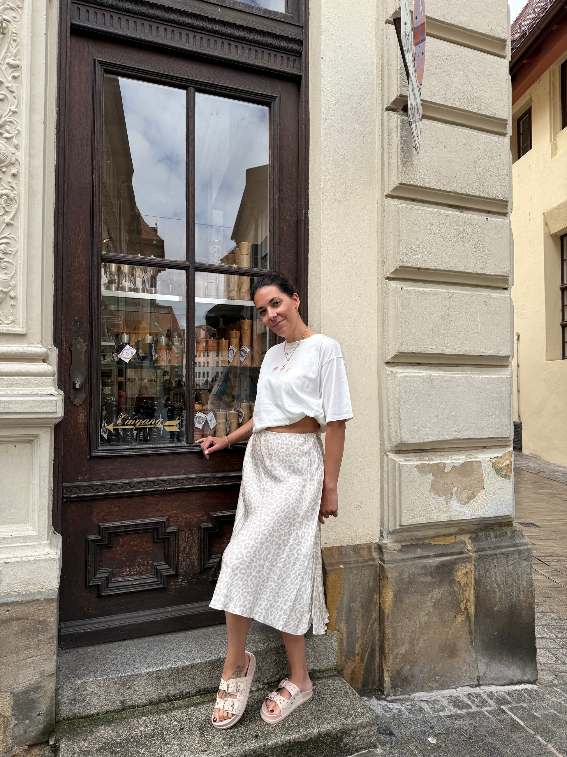 Schöner Satin-Rock mit Gummibund. Er passt gut zu einem kuscheligen Strick-Pulli, kann aber auch mit einem T-Shirt oder engeren langarm-Shirt kombiniert werden.
