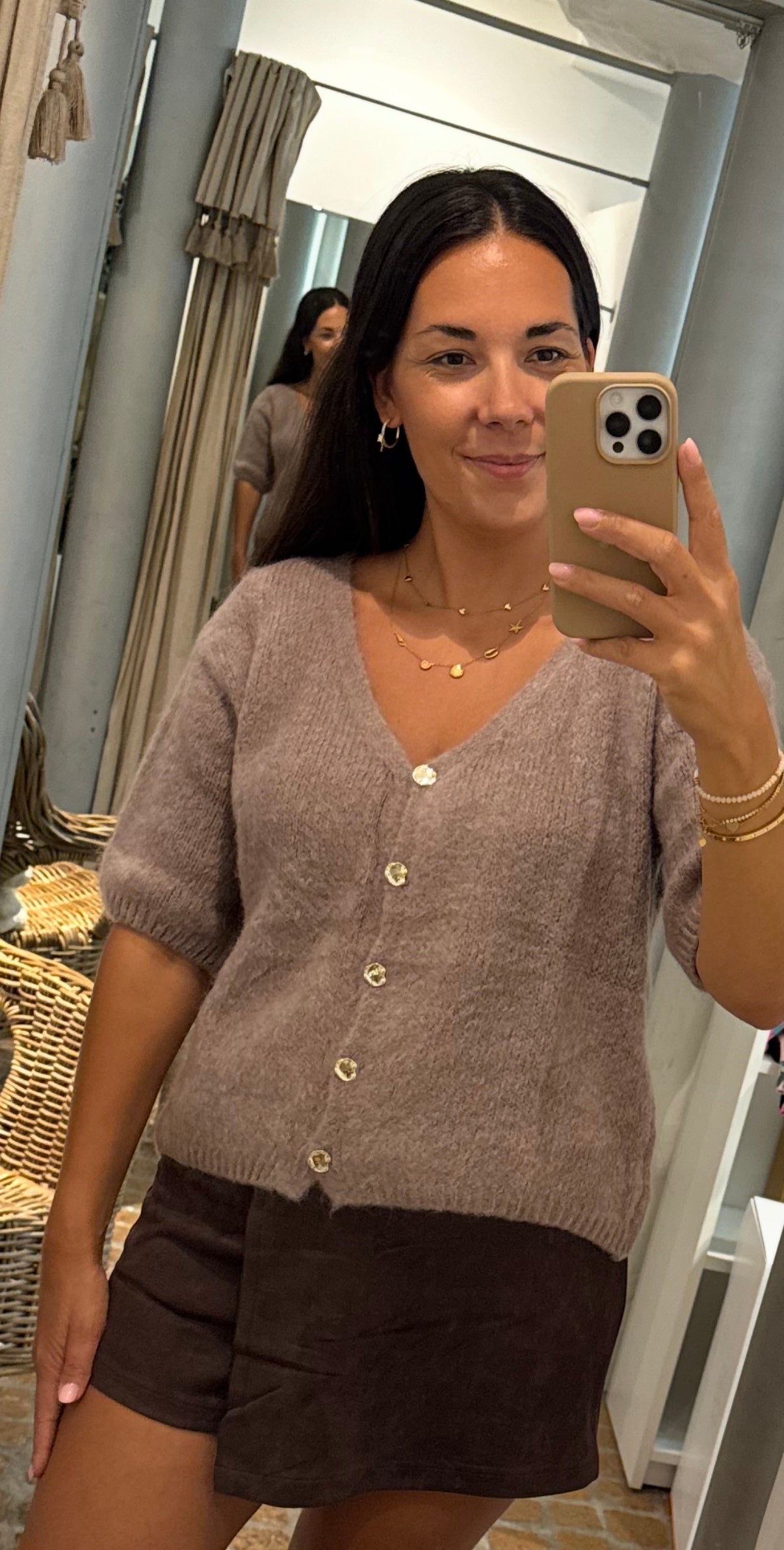 Strick Jacke GOLD mit Dreiviertel Arm in Taupe