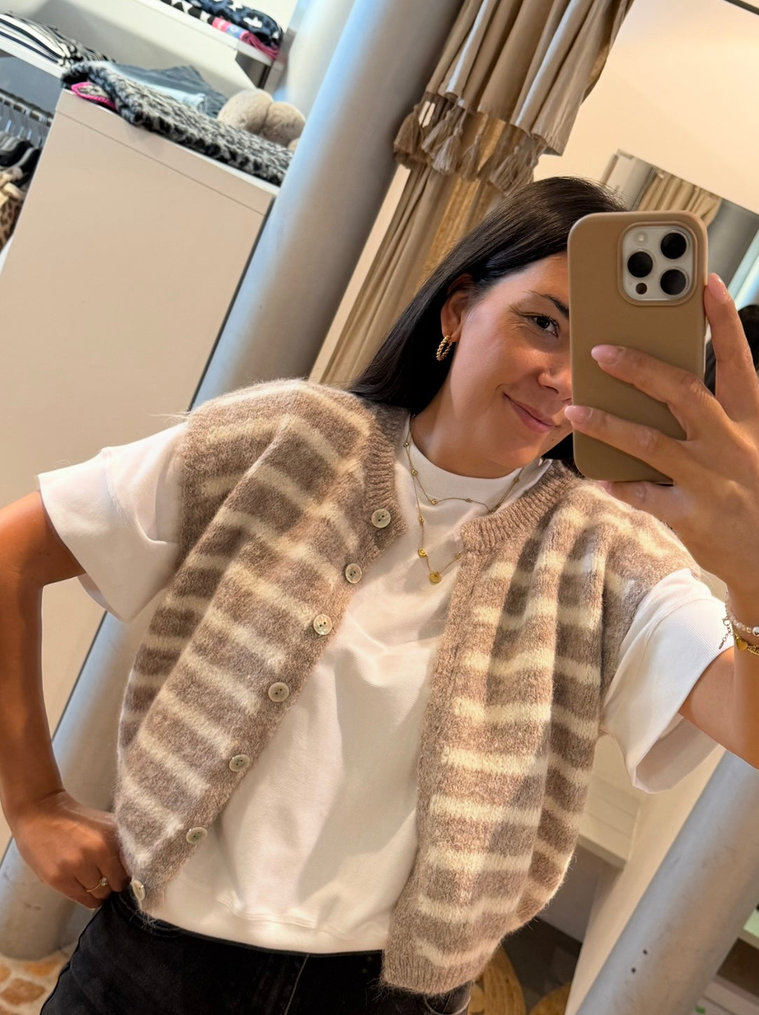 Wunderschöne Strick Weste in beige gestreift. So weich und komfortabel, absolute Empfehlung.