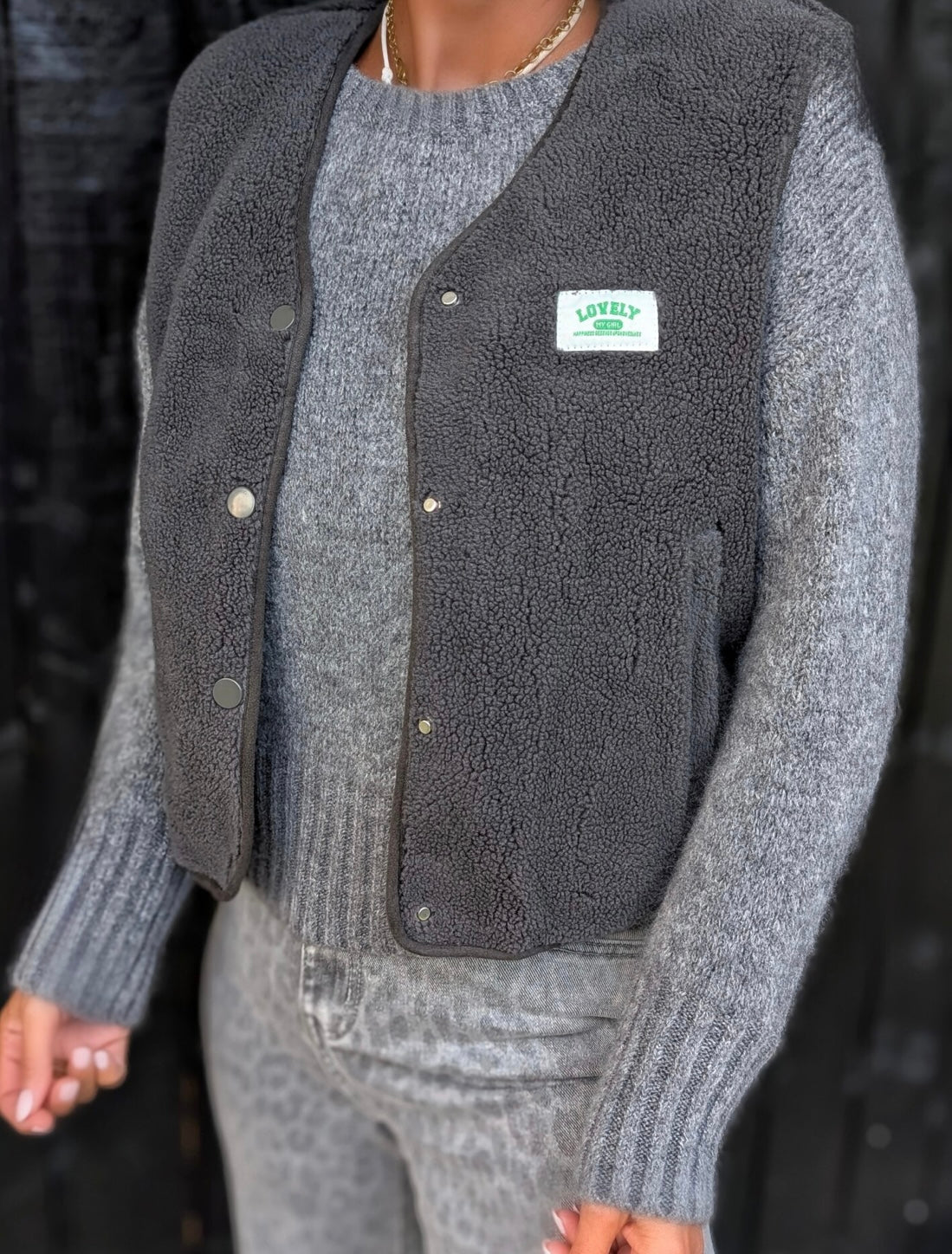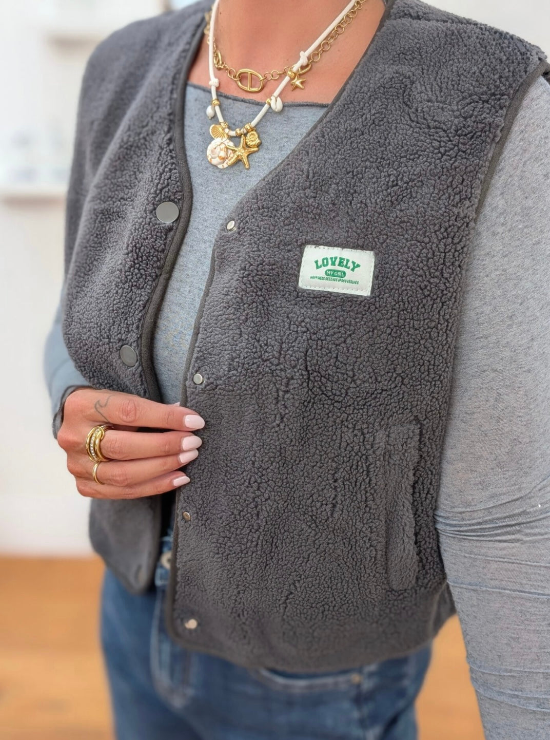 Wunderschöne Teddy Weste in grau. Der perfekte Begleiter für dein Outfit