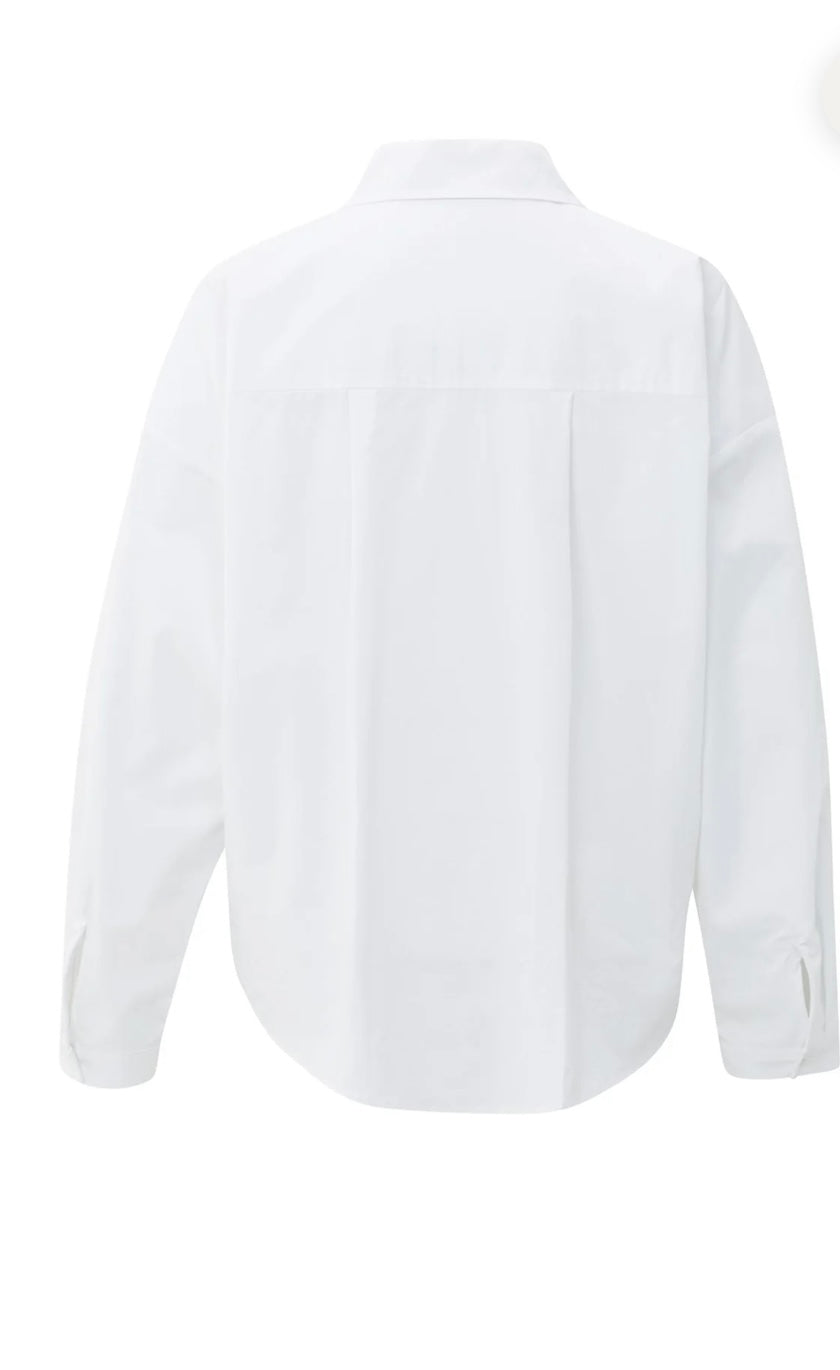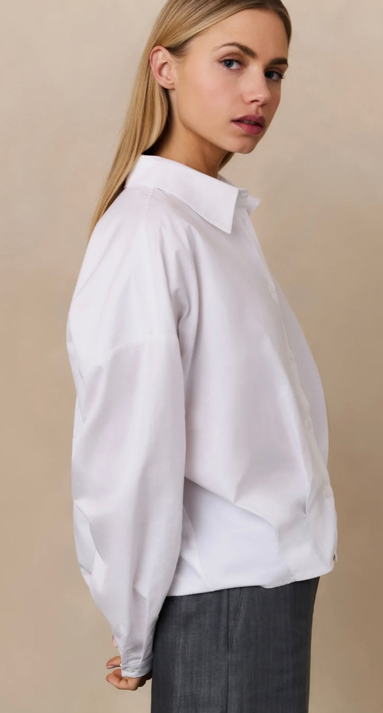 Diese stylishe Popelinebluse aus weicher Baumwolle besticht durch ihre Oversize-Passform. Sie hat lange Ärmel, einen klassischen Kragen und eine durchgängige Knopfleiste. Die dezenten Plisseedetails auf der Vorderseite sorgen für eine raffinierte Silhouette. Die Bluse ist die perfekte Wahl für Freizeit- und Bürooutfits.
